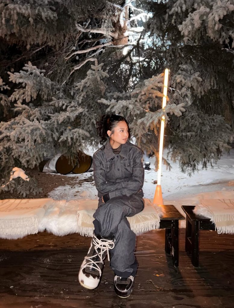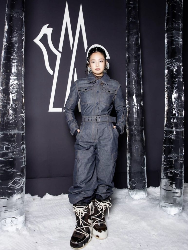 Sous un ciel nocturne face aux montagnes enneigées, le décor donnait immédiatement le ton. Les invités emmitouflés ont été transportés jusqu’au lieu du défilé en motoneige. Parmi les invités, Jennie a été aperçue dans un look parfaitement adapté à l’ambiance hivernale.