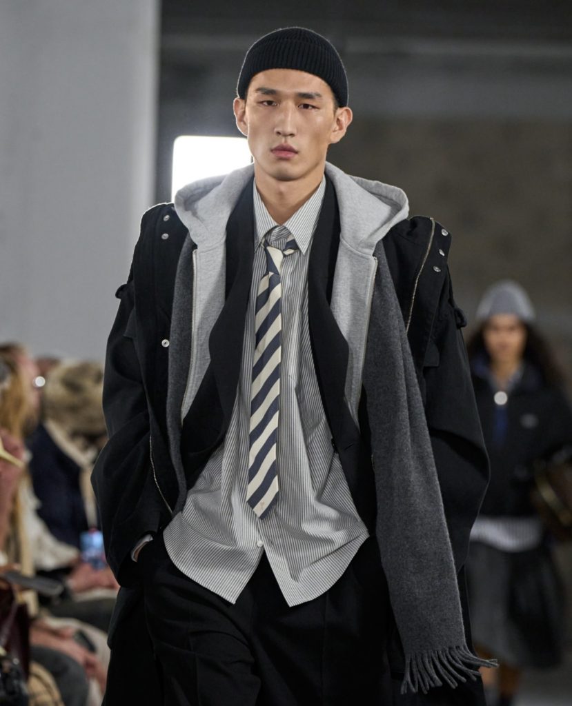 Pour l’Automne-Hiver 2026, les défilés homme ont acté : cette saison la cravate n’est pas associée au costume strict ni à une idée figée du formel. Elle s’impose comme un élément de style à part entière intégré à une garde-robe plus souple et surtout plus moderne.