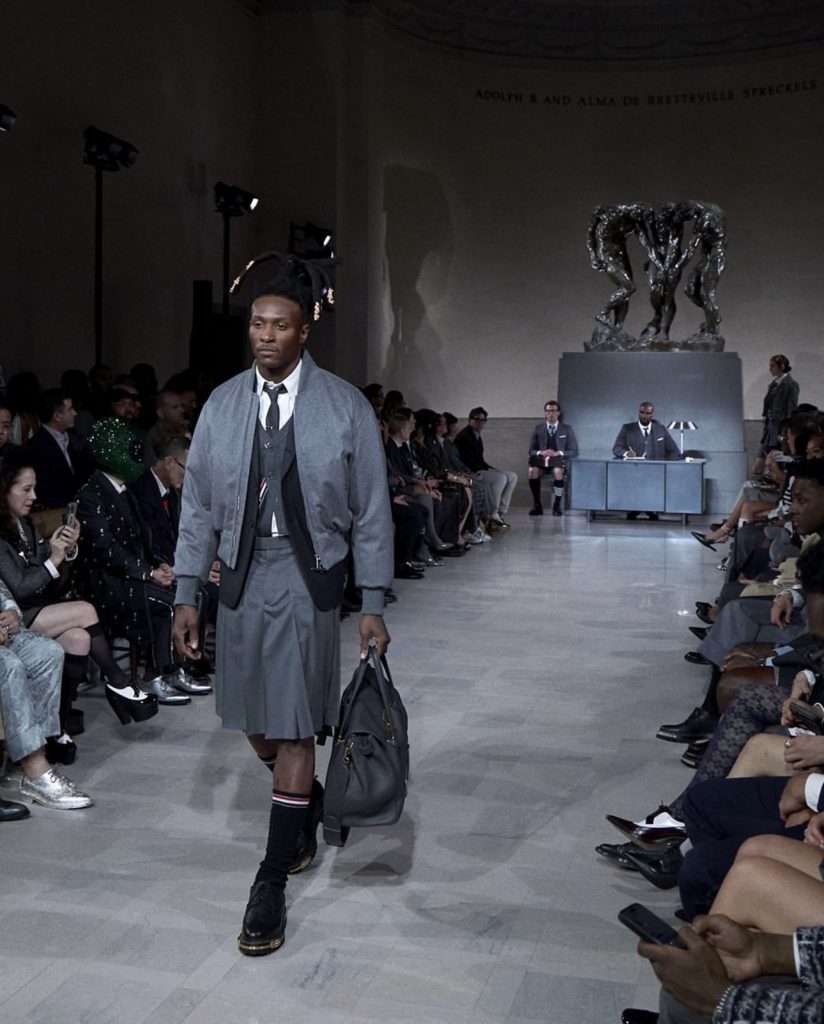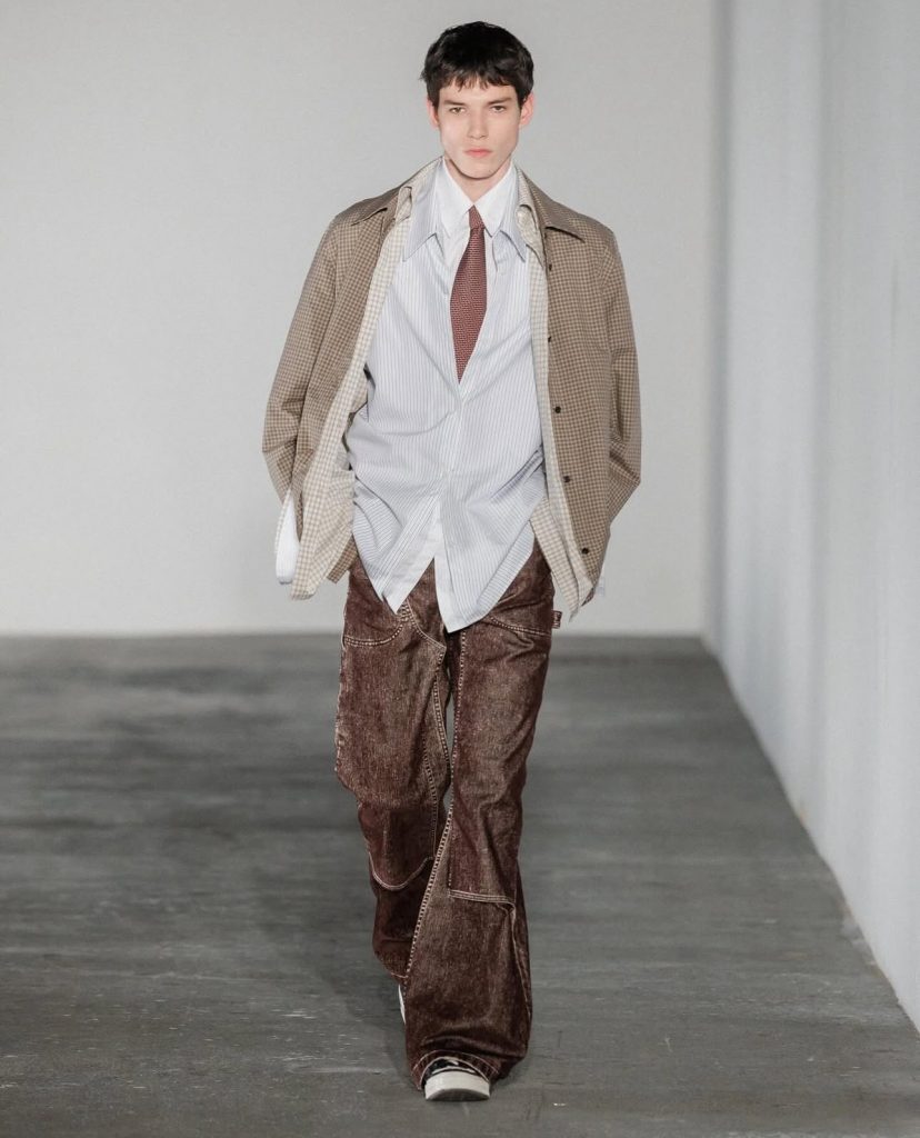 Portée avec un cardigan, glissée sous une veste ample, associée à des pantalons plus fluides ou à des superpositions décontractées, elle s’éloigne du registre du tailoring rigide pour entrer dans une nouvelle lecture du vestiaire masculin. Une approche plus libre et moins codifiée qui reflète l’évolution globale des collections homme.