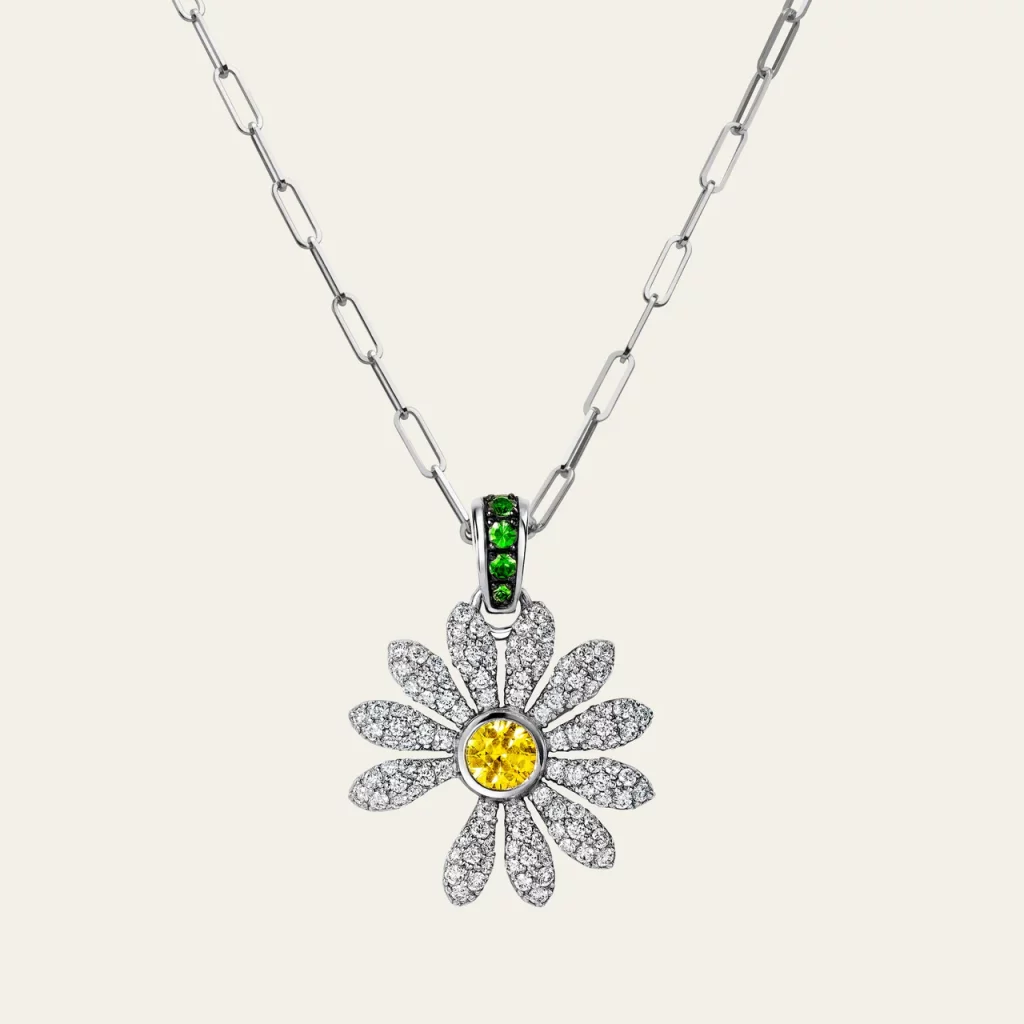 Le résultat ? Un pendentif délicat suspendu à une chaîne paperclip sur-mesure (aux maillons longs et plats), disponible en argent 925 ou en or blanc 18 carats serti de pavés. Un design à l’image de G-Dragon : entre contrastes, audace et liberté créative.