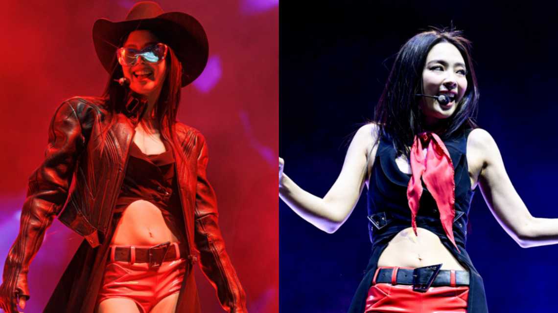 La pièce en question fait directement référence à la collection « Les Cowboys ». Jennie portait un short rouge, un foulard coordonné, un bustier noir structuré ainsi qu’une veste en cuir, une combinaison qui rappelle les codes originaux tout en étant réinterprétée dans un esprit plus pop et contemporain.
